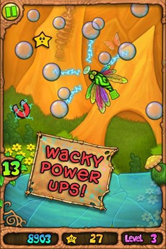 Tijdens de vlucht pak je niet alleen bubbeltjes om verder te gaan in de levels. Ook komen er af en toe sterretjes voorbij, die je verzamelt om de andere werelden vrij te spelen. Om je verder te helpen, vliegen er ook bonussen rond waarmee je extra sprongen verzamelt. Fling a Thing offreert daarnaast tal van andere leuke extraatjes, zoals roze bubbels voor nog meer stuiterpret.